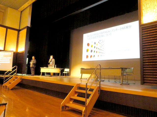おとな分科会事務局から「これまでの分科会の取り組み」と「就労に関するアンケートの考察」の発表