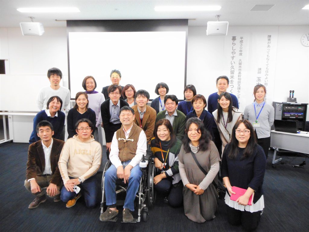 2月23日、平成30年度久留米市障害者基幹相談支援センターの研修会を開催しました。テーマは「暮らしやすい久留米をつくるために~障害があってもなくても住みよい街くるめを目指して~」。講師はEテレでおなじみの玉木幸則氏。完全な共生社会「フルインクルージョン」をつくっていくために、教育や権利条約等の視点からお話をしていただきました。
