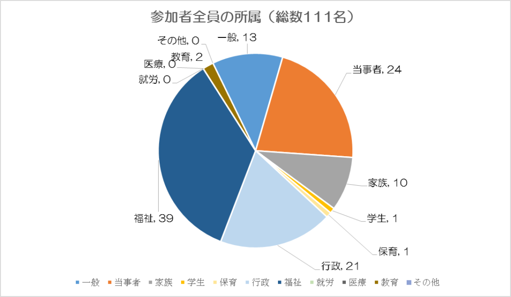当日参加いただいた方の所属とアンケートの集計結果をまとめました