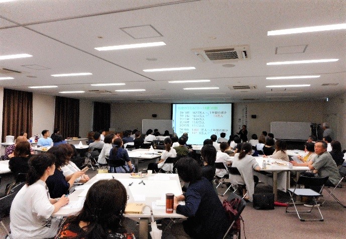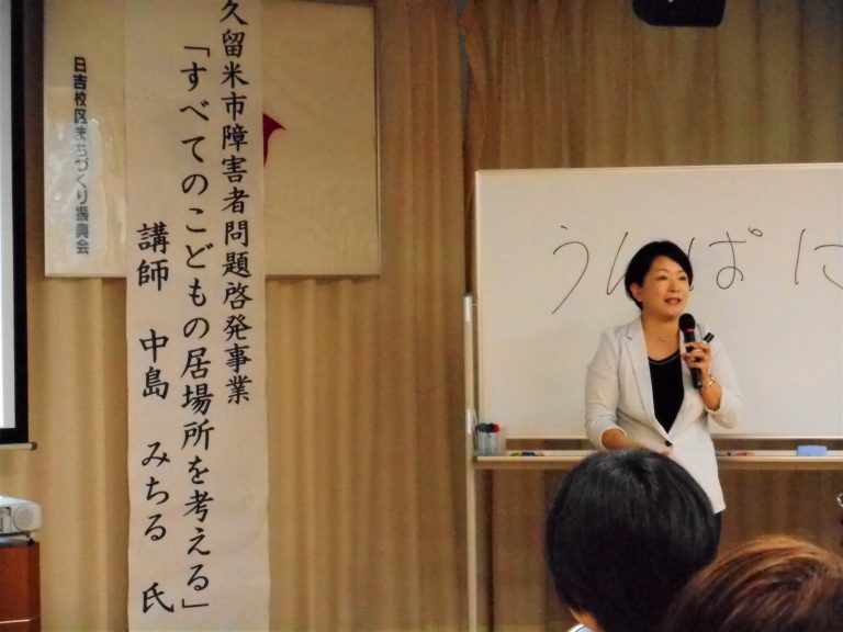 今回は、すべてのこどもの居場所を考える実行委員会の主催、そして、久留米市障害者基幹相談支援センター共催で、つながって支えあう幸(子)育ての実現に向けたワークショップを企画しました。講師には、滋賀県の育能インストラクターであり、滋賀地方自治研修センター理事の中島みちる氏をお迎えし、講義とグループワークを行っていただきました。